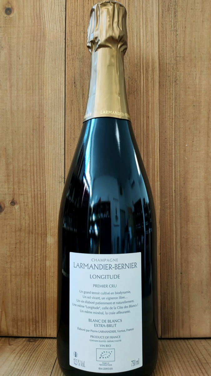 Contrairement à sa petite sœur Latitude, la cuvée Longitude est la fille d'un assemblage de vins issus de sept parcelles du nord au sud de la Côte des Blancs : c'est donc un champagne parfaitement représentatif du potentiel de cette fameuse côte, toujours sur cette idée de pureté, de minéralité, de fraîcheur. Champagne d'élégance, à ouvrir en apéritif et à poursuivre à table en compagnie d'une entrée de la mer...