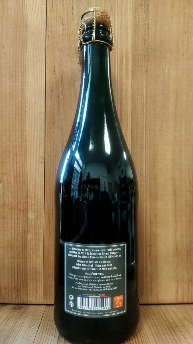 À quelques kilomètres du village de ma jeunesse se trouve celui de Milly-sur-Thérain, près de Beauvais (Oise) : là est établie depuis 1955 une cidrerie, initialement "Cidrerie Maeyaert" du nom de son fondateur ; aujourd'hui, l'établissement est désormais Brasserie et Cidrerie de Milly pour cause de diversification dans la bière. Cette partie de la terre picarde est riche en pommes à cidre : voici donc le cidre brut suivant la recette originale !