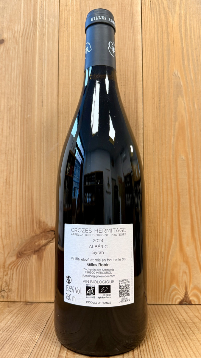 Le Crozes-Hermitage Rouge Albéric bénéficie de vieilles vignes d’environ 50 ans, provenant des principaux terroirs du Domaine. Trois différentes Syrah se complètent idéalement : ainsi Albéric, durant son vieillissement, donnera le plaisir de la Syrah noble, profonde, à fort caractère. La révélation de chacune des plus belles Syrah du Domaine Gilles Robin et leur assemblage est la clé de cette cuvée.
