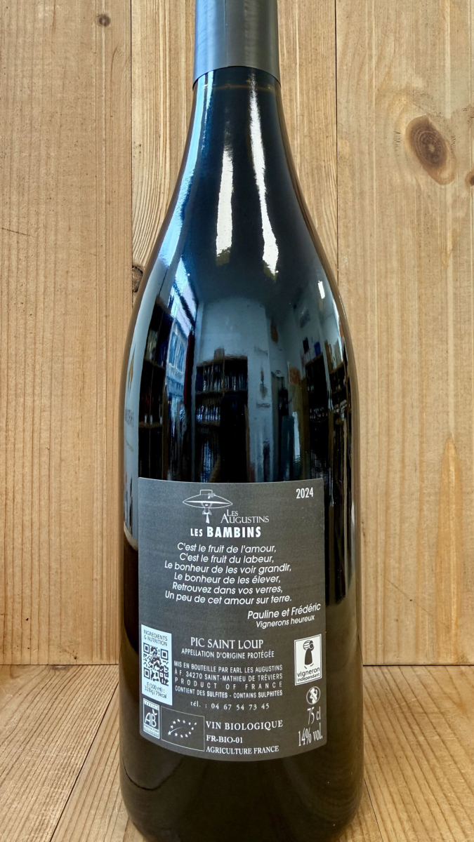 Le Clos des Augustins, c'est typiquement une histoire de vignerons, d'hommes et de femmes du Languedoc qui se transmettent autant leurs vignes que leurs méthode de travail, et surtout la passion de réaliser de belles cuvées de Pic-Saint-Loup ! Située au pied de la montagne, ce domaine à petits rendements et en agriculture biologique dédie chaque cuvée à la nouvelle génération, ce qui explique les noms sur les bouteilles !