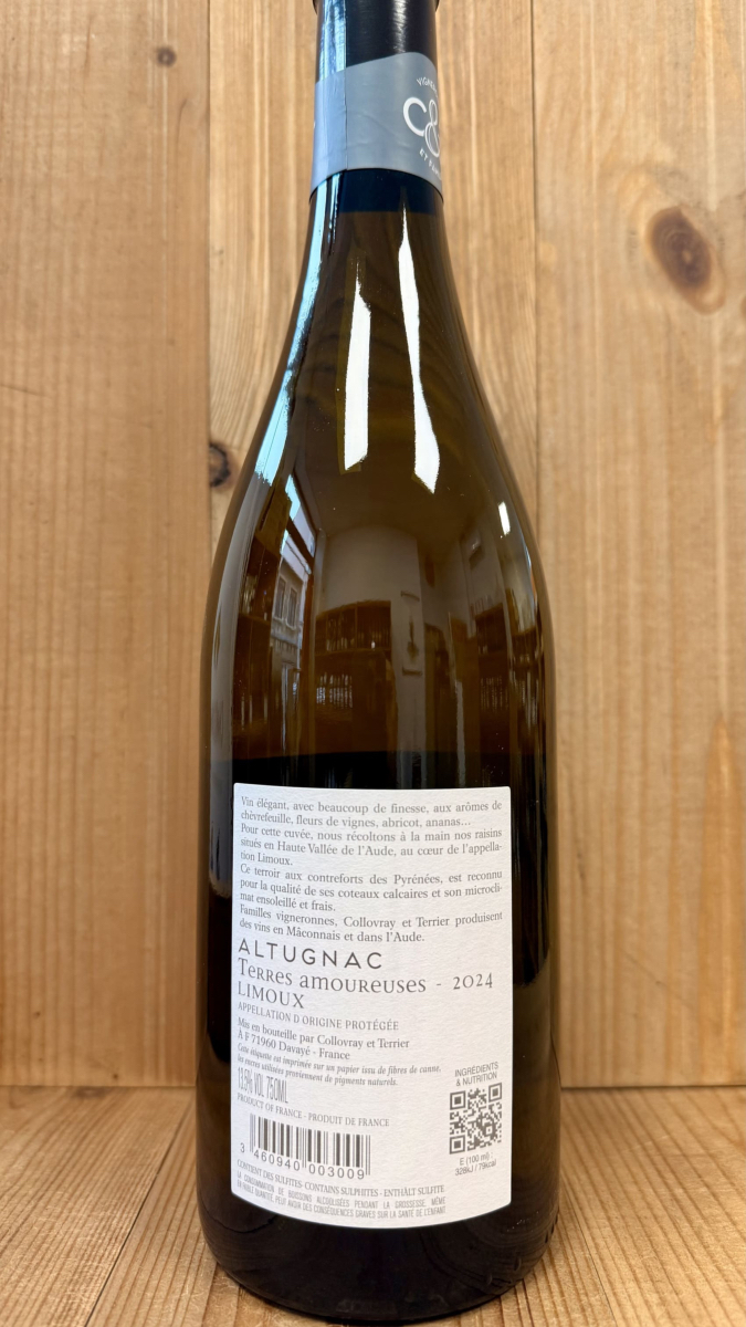 Dire que j'ai testé des vins de Limoux est un euphémisme : après avoir fait découvrir à mes clients de Lyon deux autres cuvées en Pays d'Oc (Les Turitelles et les Grands Penchants) voici donc Le Limoux "Terres Amoureuses" : il tient son nom à l'argile qui colle aux bottes les jours de pluie...mais quand on relève la tête, le paysage fabuleux des Pyrénées s'offre aux travailleurs de cette vigne orientée plein sud ! Un vin blanc de table élégant aux accents floraux et légèrement agrumes, de l'amplitude en bouche : ce sera le vin parfait pour accompagner un poisson d'eau douce, par exemple.