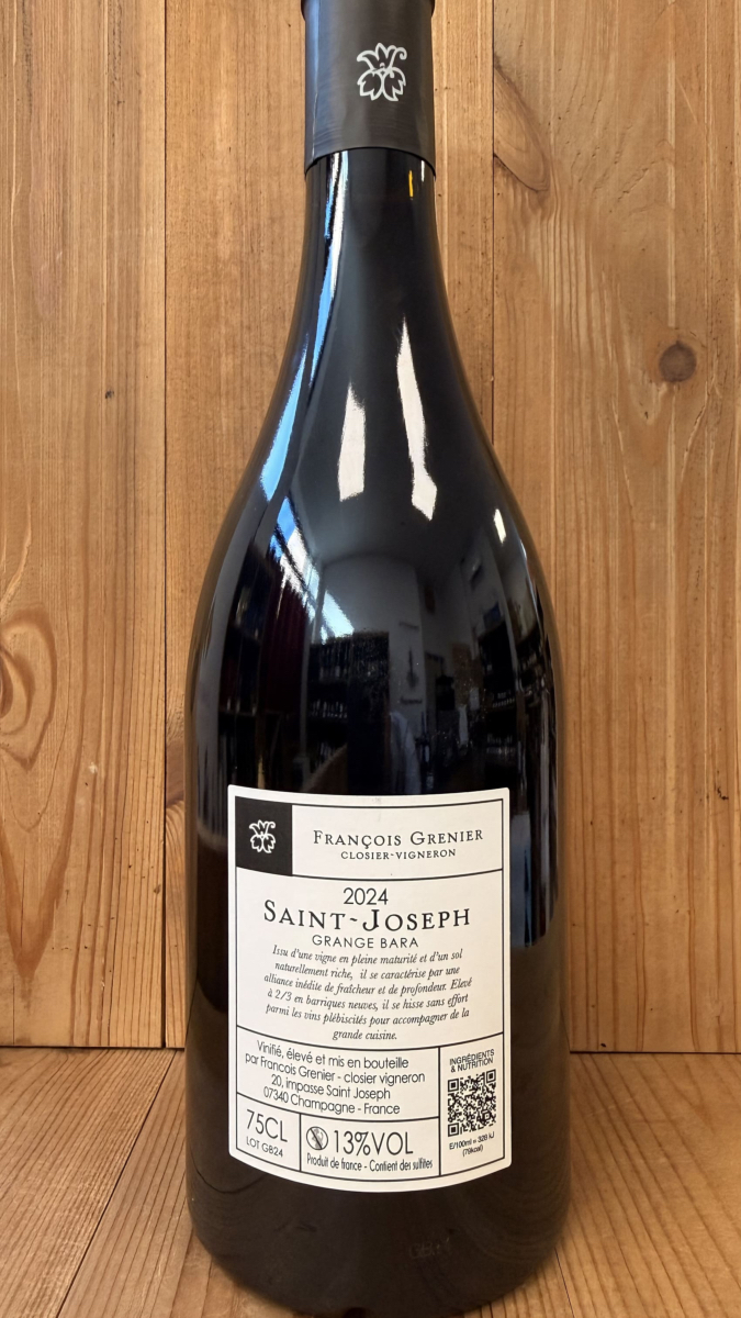 Pour y être allé avec François, j'ai bien pu constater la géographie de cette parcelle : une pente assez douce, avec en contrebas un bosquet qui va bloquer une partie du vent : si le travail est le même qu'avec la cuvée issue de la parcelle dite Chaussonot (à 300 mètres de la Grange Bara), c'est vraiment le terrain qui va faire la différence : un Saint-Joseph plus rond, plus gourmand et parfait pour accompagner un joli rôti de boeuf, vous savez, celui du dimanche chez Belle-Maman...